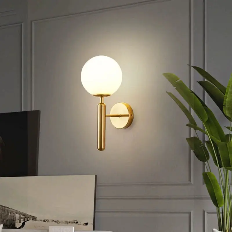 Transformă-ți spațiul într-un colț de eleganță modernă cu această aplică de perete cu design minimalist și finisaj auriu satinat. Globul din sticlă mată difuzează o lumină caldă și plăcută, ideală pentru ambientul dormitorului, holului sau livingului tău.