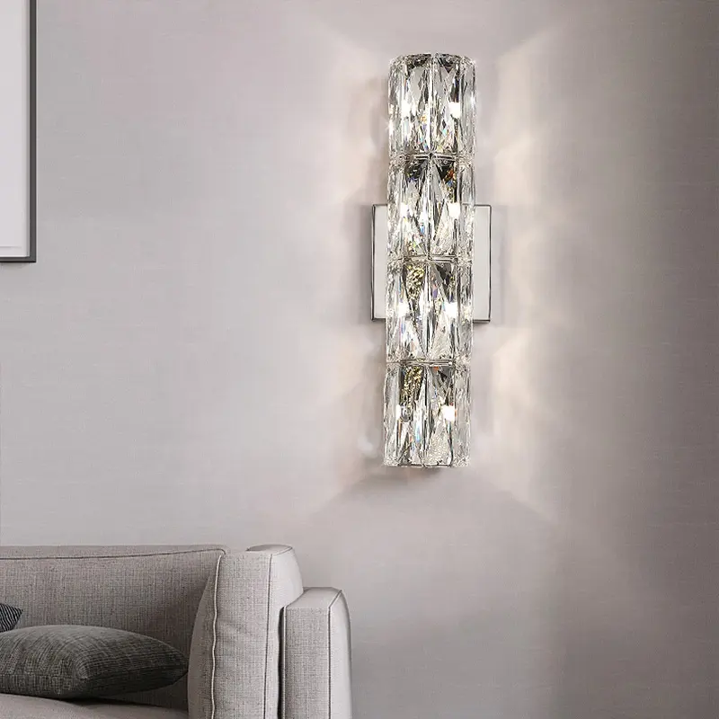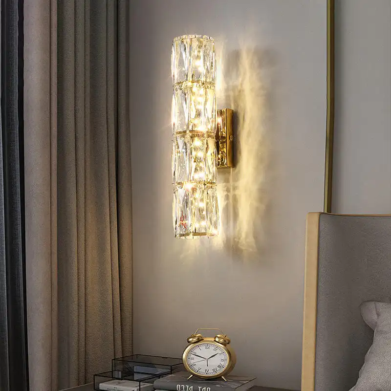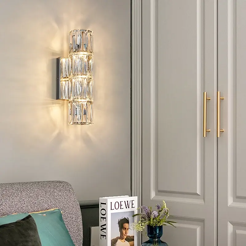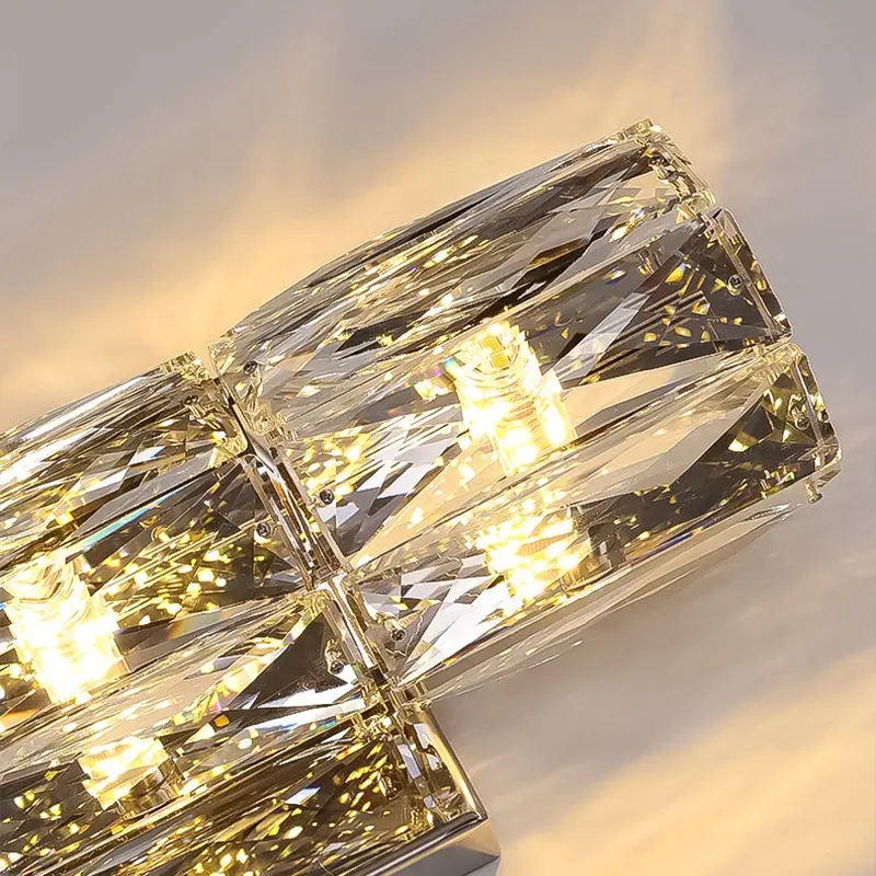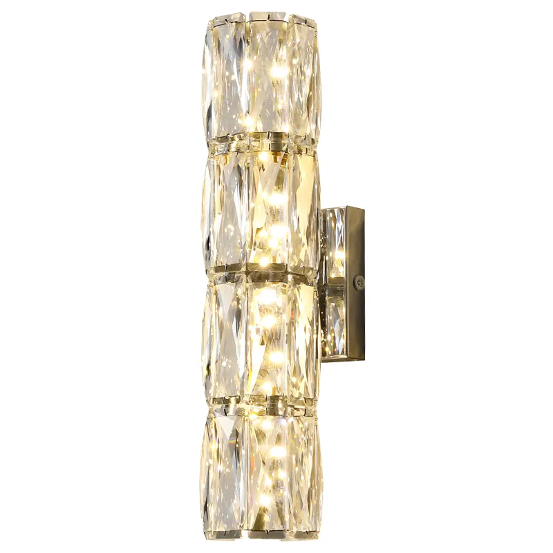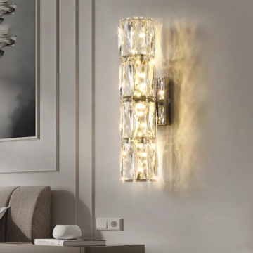 Adaugă rafinament și atmosferă sofisticată cu această aplică de perete decorativă cu cristale. Designul vertical elegant, accentele metalice și difuzia caldă a luminii transformă orice încăpere într-un spațiu luxos și primitor.